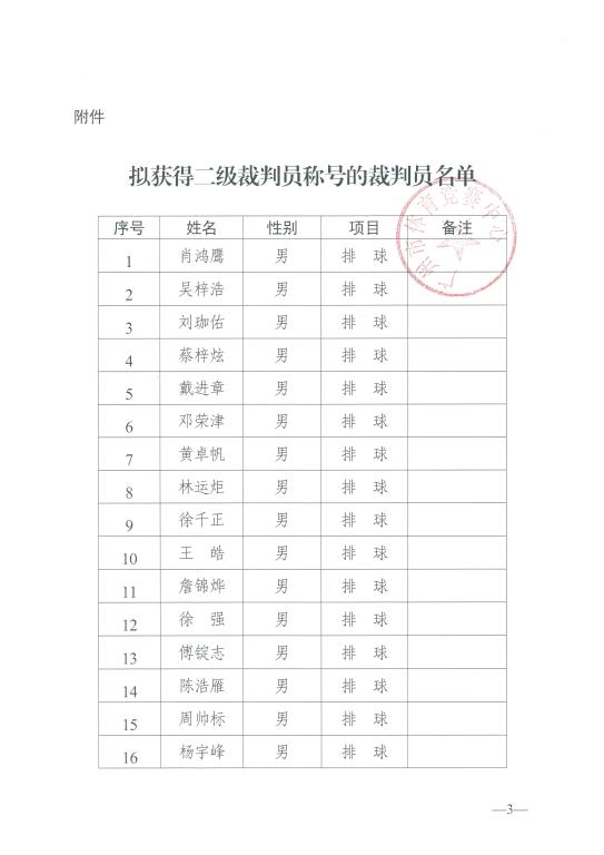 365bet日博关于对拟获得二级裁判员称号进行公示的通知